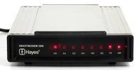 En 1981 el módem serial de 1200 baudios Hayes Smartmodem introduce el Conjunto de Comandos Hayes AT. Esto supone un gran avance de estandarización y facilita incorporar la telemática a las múltiples microcomputadoras, ya que facilita establecer los enlaces a través de un conector serial de comunicaciones, que es normalizado como “puerto COM, Centronics 232”.